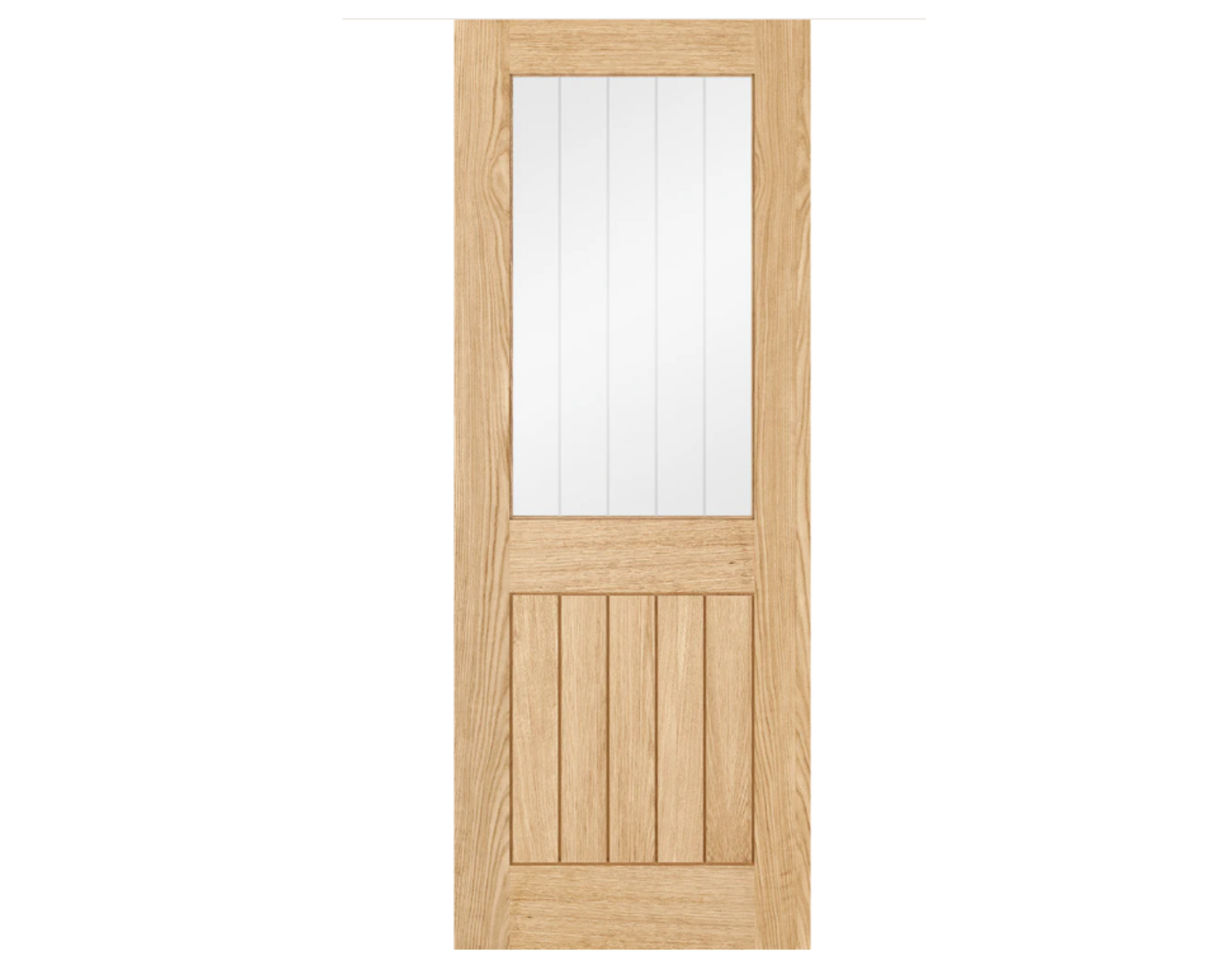 L Baxters Solid Oak Core With Glass 50/50 Vision Panel Internal Door (Including Fitting)
